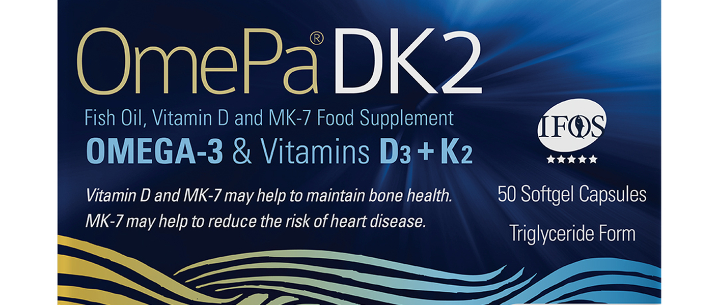Omepa DK2 also includes eicosapentaenoic acid (EPA) and docosahexaenoic acid (DHA), on the other hand, are types of Omega-3, that is found in all the cells of the body. They have very distinct roles and actions, essential to bodily functions, while offering excellent health benefits. DHA is important in maintianing brain function and vision, and when combined with EPA, it contributes to normal heart function. Omega DK2 also includes two essential vitamins, Vitamin D and K2, both of which ensure that calcium is absorbed easily, reaching the bones, preventing arterial calcification. These vitamins help to keep your heart and bones healthy with vitamin K2 regulating blood clotting, and vitamin D supporting muscular function and a healthy immune system.